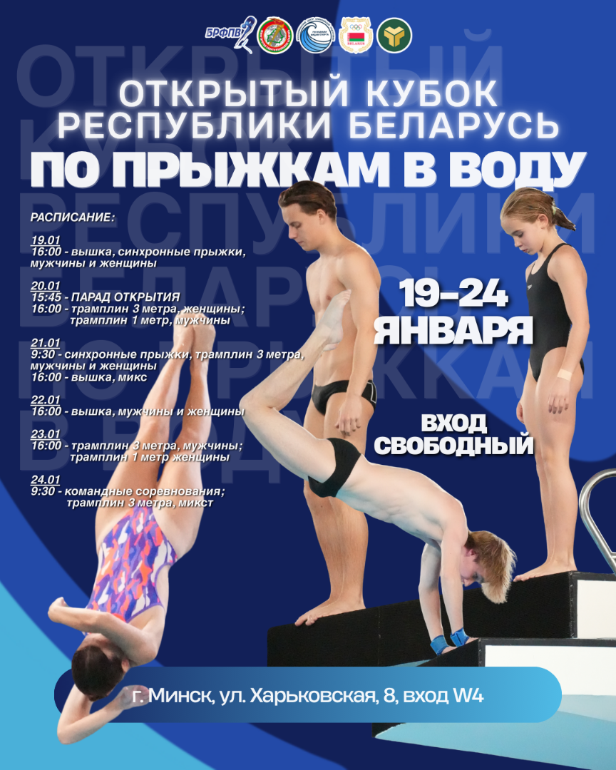 С 19 по 24 января 2026 года в учреждении «Республиканский центр олимпийской подготовки по водным видам спорта» состоится кубок Республики Беларусь по прыжкам в воду.